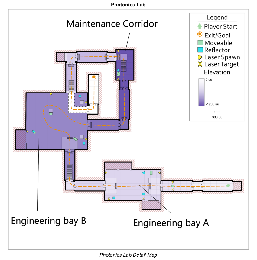 The player moves objects and reflects energy beams into corresponding receptacles to unlock doors.